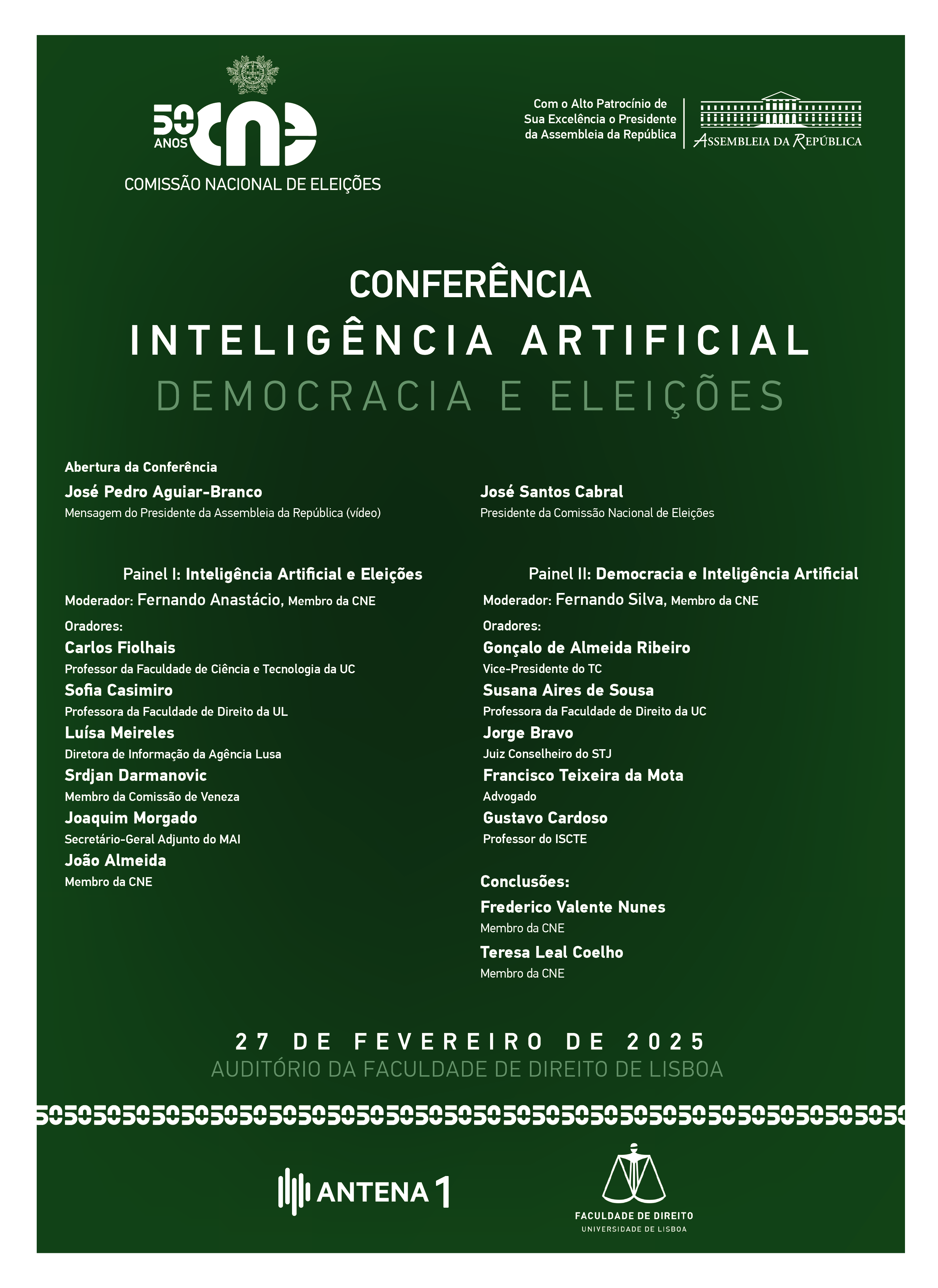 Publicação sobre a Conferência “Inteligência Artificial, Democracia e Eleições” – 27 de fevereiro de 2025 - comemorativa dos 50 anos da tomada de posse da I Comissão em 27 de fevereiro de 1975
